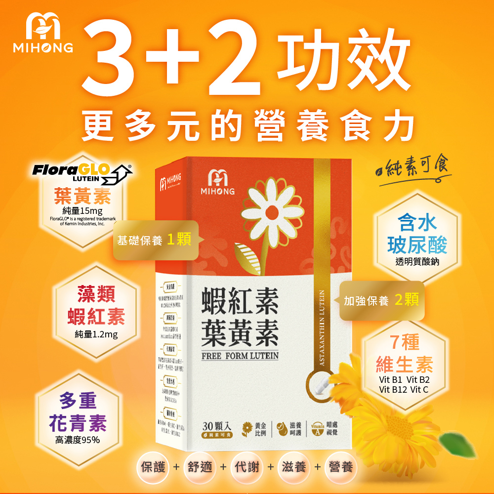 A:MIHONG®蝦紅素葉黃素有3+2特色: