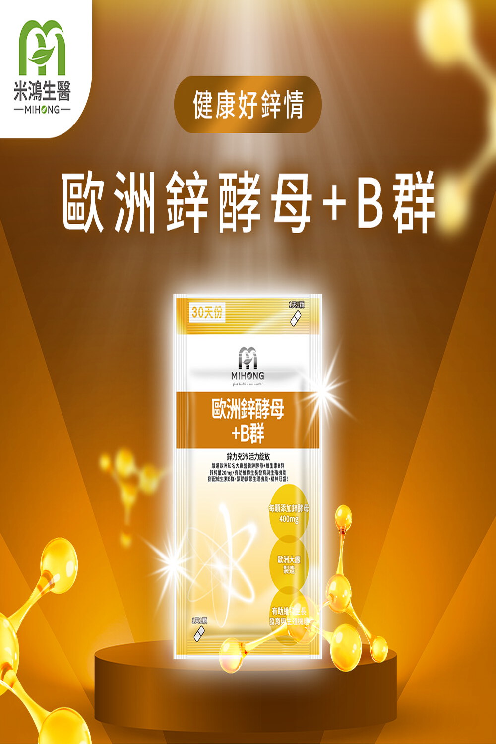 A:採用頂級歐洲大廠製造Lalmin®鋅酵母,通過國際檢驗認證,以專利技術保留完整養分,搭配維生素B群,幫助調節生理機能,精神旺盛,滋補強身。