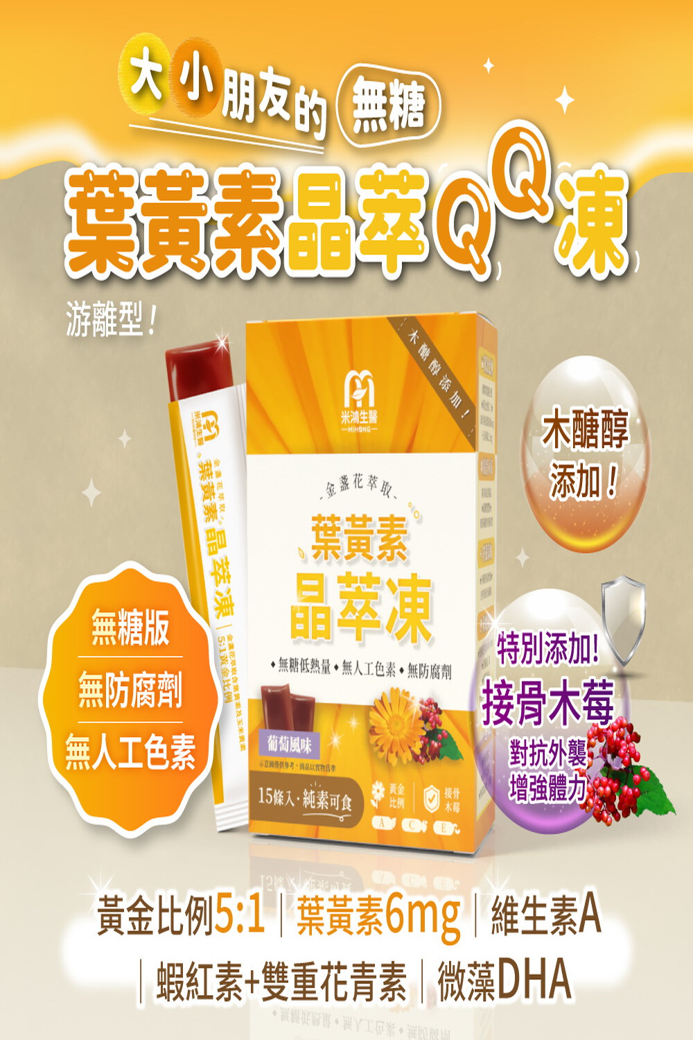 Q:MIHONG®金盞花萃取葉黃素晶萃凍是無糖的嗎?
