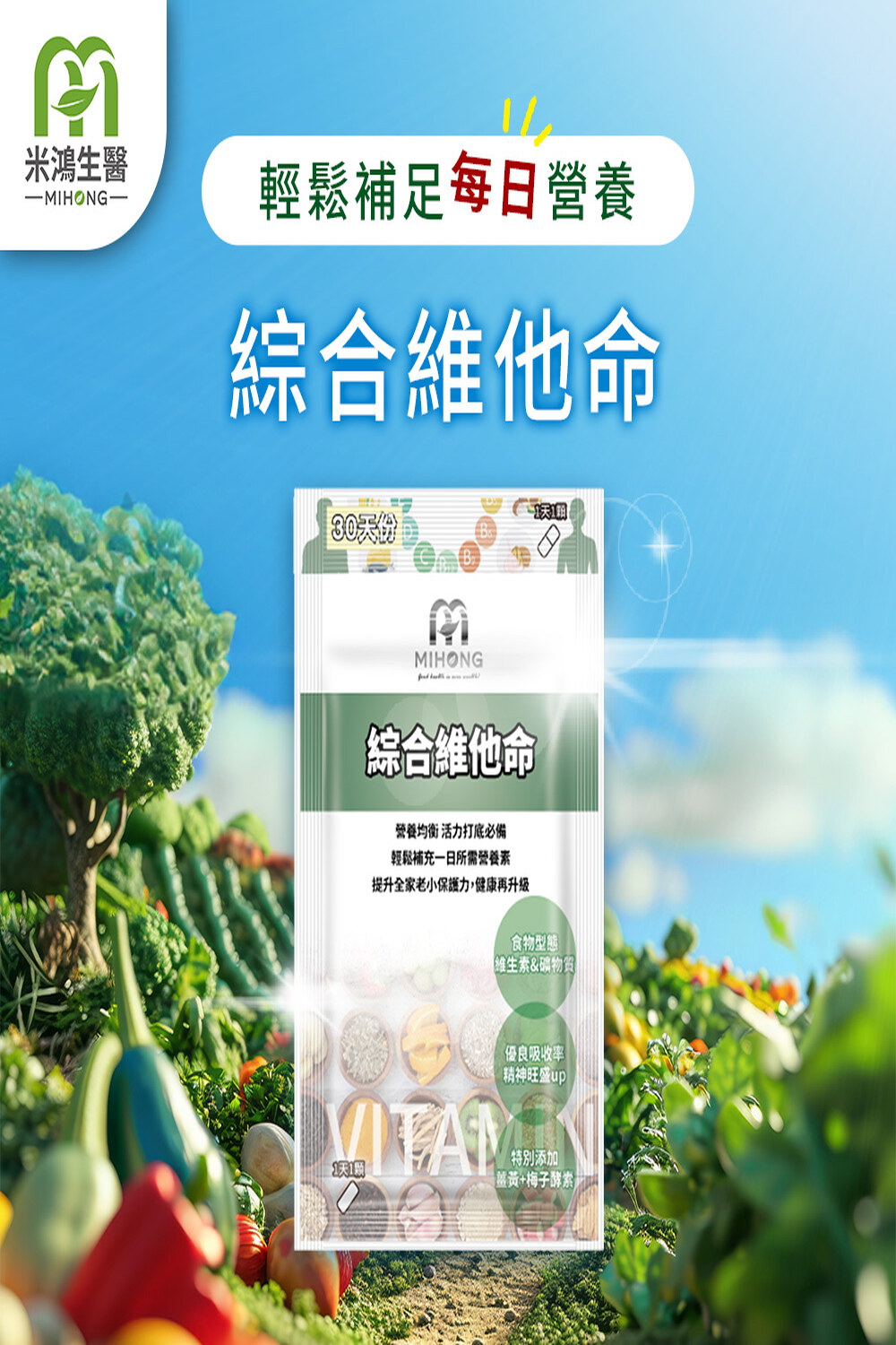 商品名稱:MIHONG®綜合維他命(30顆/包)